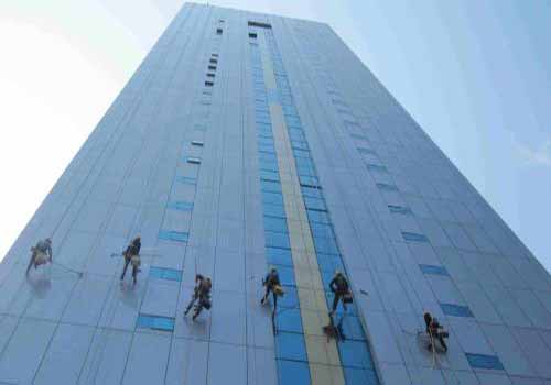 外墙清洗需要使用专业的清洗设备和由经验丰富的专业人员操作。清洗设备包括吊篮、清洗剂、高压水枪、软刷等。操作人员需要经过培训和认证,具备高空作业和安全防范意识。
